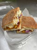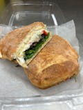 Grilled chicken breast, marinara sauce, mozzarella cheese, roasted red peppers, red onions, lettuce and mayonnaise.