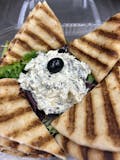 Chickpeas and tahini spread with garlic served with warm pita triangles.
